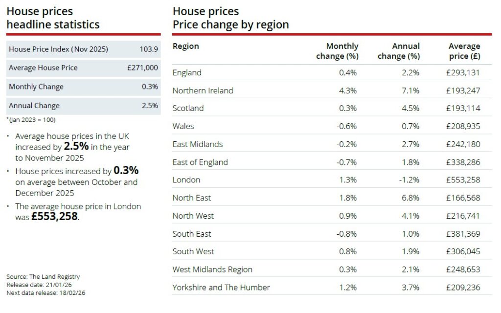 House prices expected to rise 2% in 2026, with stronger growth outside London and the South